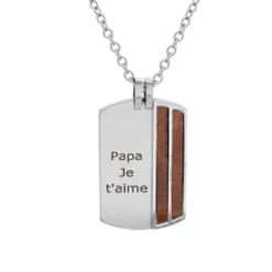 Collier En Acier Chaîne Avec Pendentif Rectangulaire Dim 35×20 Mm Aspect Bois Longueur 55+5cm
