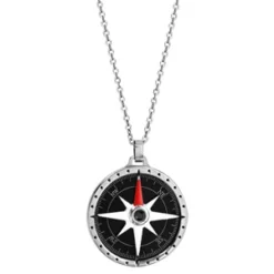 Collier En Acier Chaîne Avec Pendentif Tête De Mort Mexicaine Et Yeux En Oxydes Verts 50+5cm