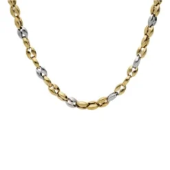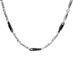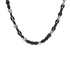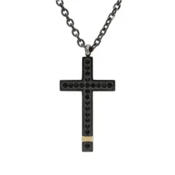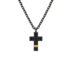 Collier En Acier Et PVD Noir Et Jaune Chaîne Avec Pendentif Grande Croix Et Oxydes Noirs 50+5cm