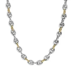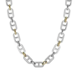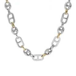 Collier En Acier Maille Palmier Avec Pendentif Boussole Et PVD Rose 51cm Réglable En 44 Cm Et 46cm