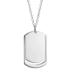 Collier En Argent Chaîne Avec Pendentif Plaque G.I. à Graver 1 Ou 2 Prénoms – Longueur 50cm + 5cm