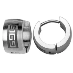 Créoles Articulées En Acier Avec Gravure Motif Tribal Noir